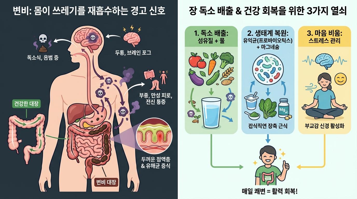 변비, 단순한 불편함을 넘어 '몸이 쓰레기를 재흡수하는' 경고 신호입니다