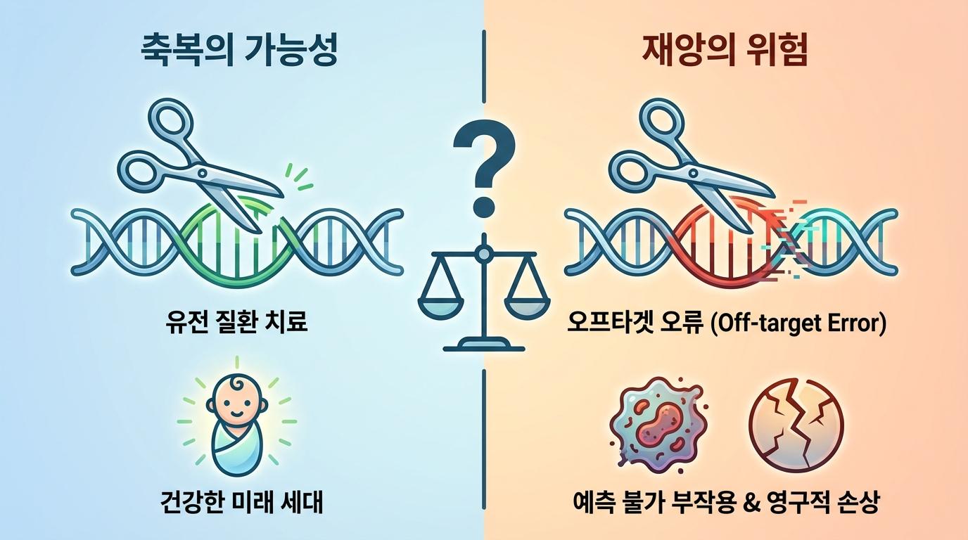 컴퓨터가 멈추고 파란 화면이 뜨는 블루스크린을 마주할 때면 우리는 당혹감을 느끼곤 합니다. 다행히 컴퓨터는 재부팅으로 문제가 해결되지만, 만약 이 블루스크린이 우리 몸속 유전자 안에서 발생한다면 어떨까요? 인간에게는 재부팅 버튼이 존재하지 않습니다. 인류는 최근 이 위험한 실험의 문을 열었습니다. 2018년 중국의 한 과학자는 인류의 성역을 침범하여 세계 최초의 유전자 편집 아기인 루루와 나나를 탄생시켰다고 발표했습니다. 에이즈 면역력 확보라는 명분은 그럴듯했지만, 그 이면에는 오프타겟 오류라는 거대한 공포가 도사리고 있었습니다.