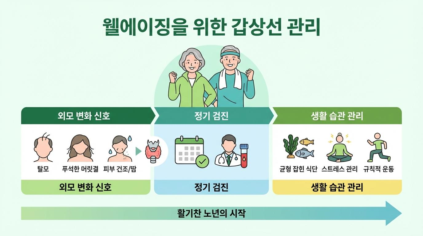 40대와 50대는 신체적 변화가 급격히 찾아오는 중요한 전환점입니다. 흔히 이 시기의 만성적인 피로감이나 설명되지 않는 체중 변화를 단순한 노화나 갱년기 증상으로 치부하기 쉽습니다. 그러나 사실 이러한 변화는 우리 몸의 '엔진'이라 불리는 갑상선 호르몬에 이상이 생겼다는 중요한 신호일 수 있습니다. 건강한 노년, 즉 웰에이징(Well-aging)을 꿈꾼다면, 내 몸의 신진대사를 총괄하는 이 작은 호르몬의 미묘한 목소리에 귀를 기울여야 합니다.