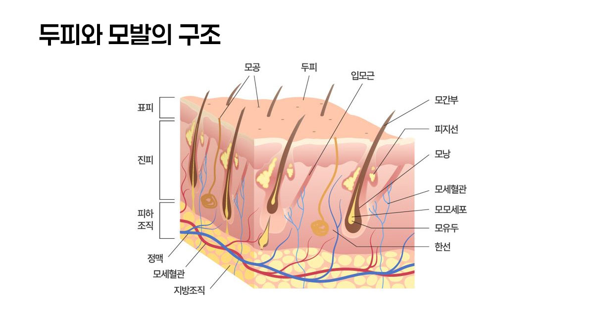 우리의 모발은 모낭이라는 작은 기관에서 자랍니다. 모낭에서는 모발이 생성되고, 이 모발이 두피를 통해 자라나면서 우리가 보는 머리카락이 되는 것이지요. 모발은 일정한 성장 주기를 가지고 있습니다. 성장기, 퇴행기, 휴지기를 반복하면서 모발이 빠지고 다시 자라나기를 계속합니다.