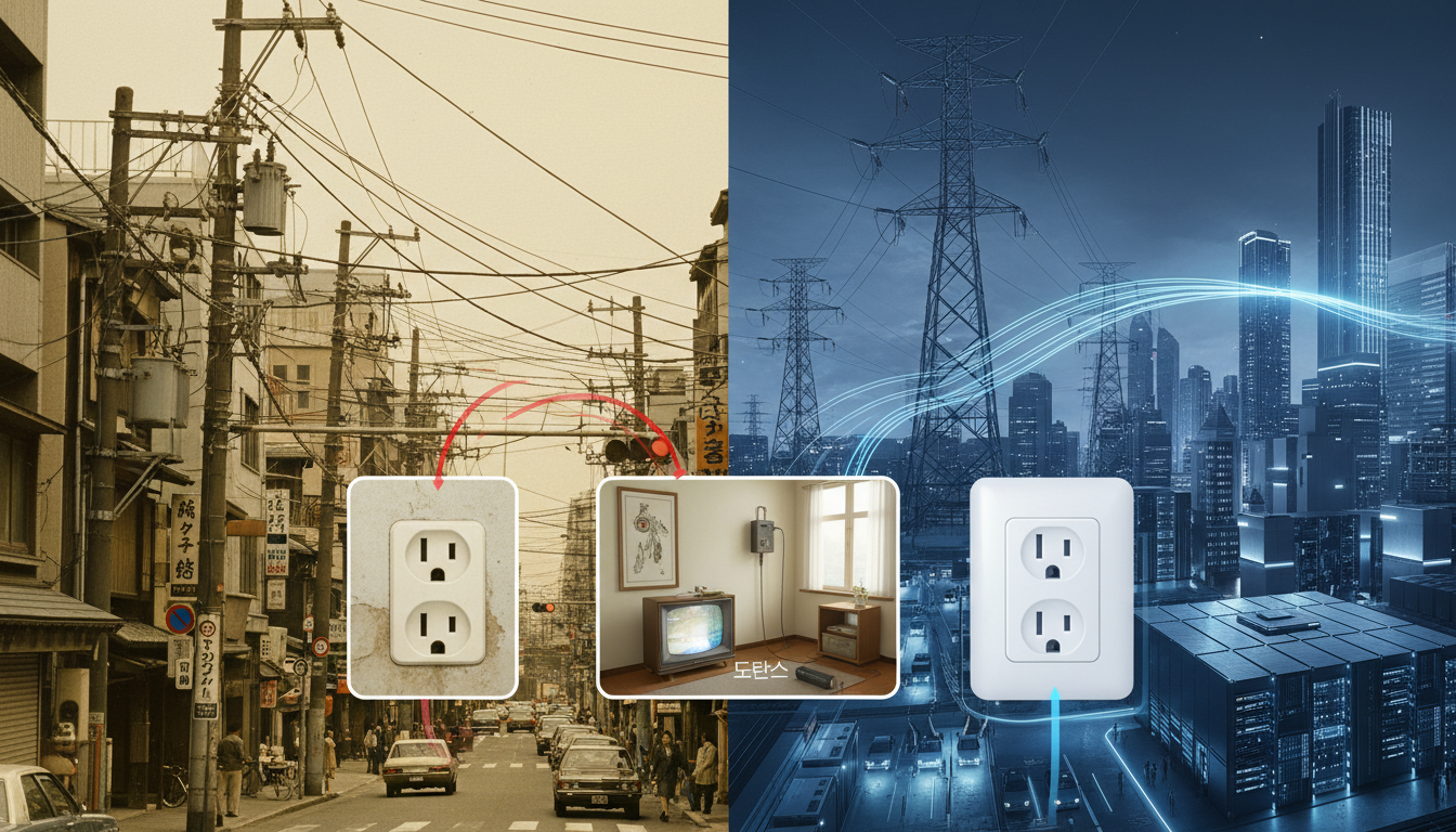 1973년, 대한민국과 일본은 국가의 혈관이라 할 수 있는 전력망을 두고 서로 다른 선택을 합니다. 당시 일본은 "110V를 유지하자"고 결정했고, 한국은 "32년이 걸려도 220V로 바꾸자"는 무모해 보이는 도전을 선택했습니다.